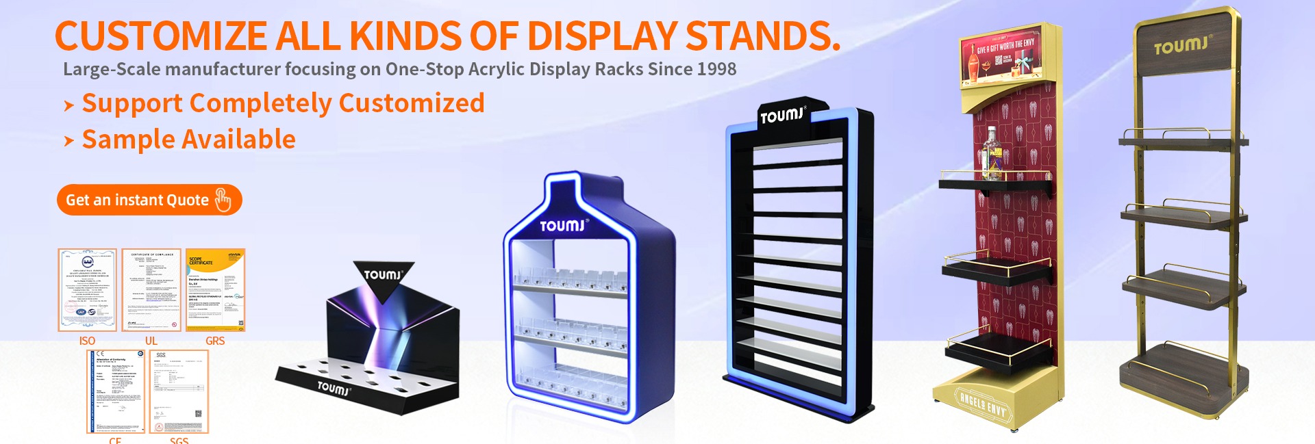 display solutions (acrylic+metal, acrylic+wood, etc.) to
