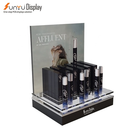 Présentoir de parfum en acrylique à 2 couches personnalisé présentoir pour supports cosmétiques présentoir pour comptoir de soins de la peau, support